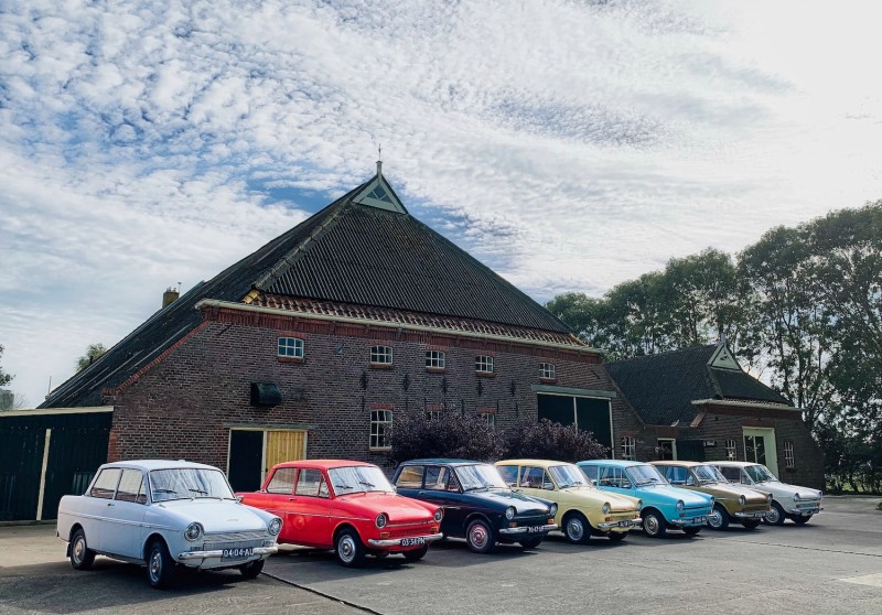 Jullie bedrijfsteam gaat verdeeld over een x-aantal auto's op pad, met korte tussenpozen tussen de auto's.